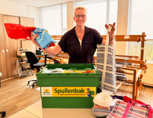 Gewapend met een volle Spullenbak gingen we langs bij het atelier aan de Zwedenburg. In de zonnige weverij staan de weefgetouwen, waar bijzondere stoffen op worden gemaakt. Kan er een draad of een strookje van worden gemaakt? Dan is het grondstof voor de weverij van Middin!
