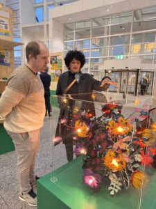 Eline Marlene maakt prachtige unieke kunstwerken van plastic afval. Ze maakt haar ‘zero waste artwork’ van al het plastic dat ze tegenkomt. Zo ook de kleurrijke plastic netjes waarin fruit en groente vaak verpakt zijn. Die verzamelen de deelnemers van Spullenbak voor haar.